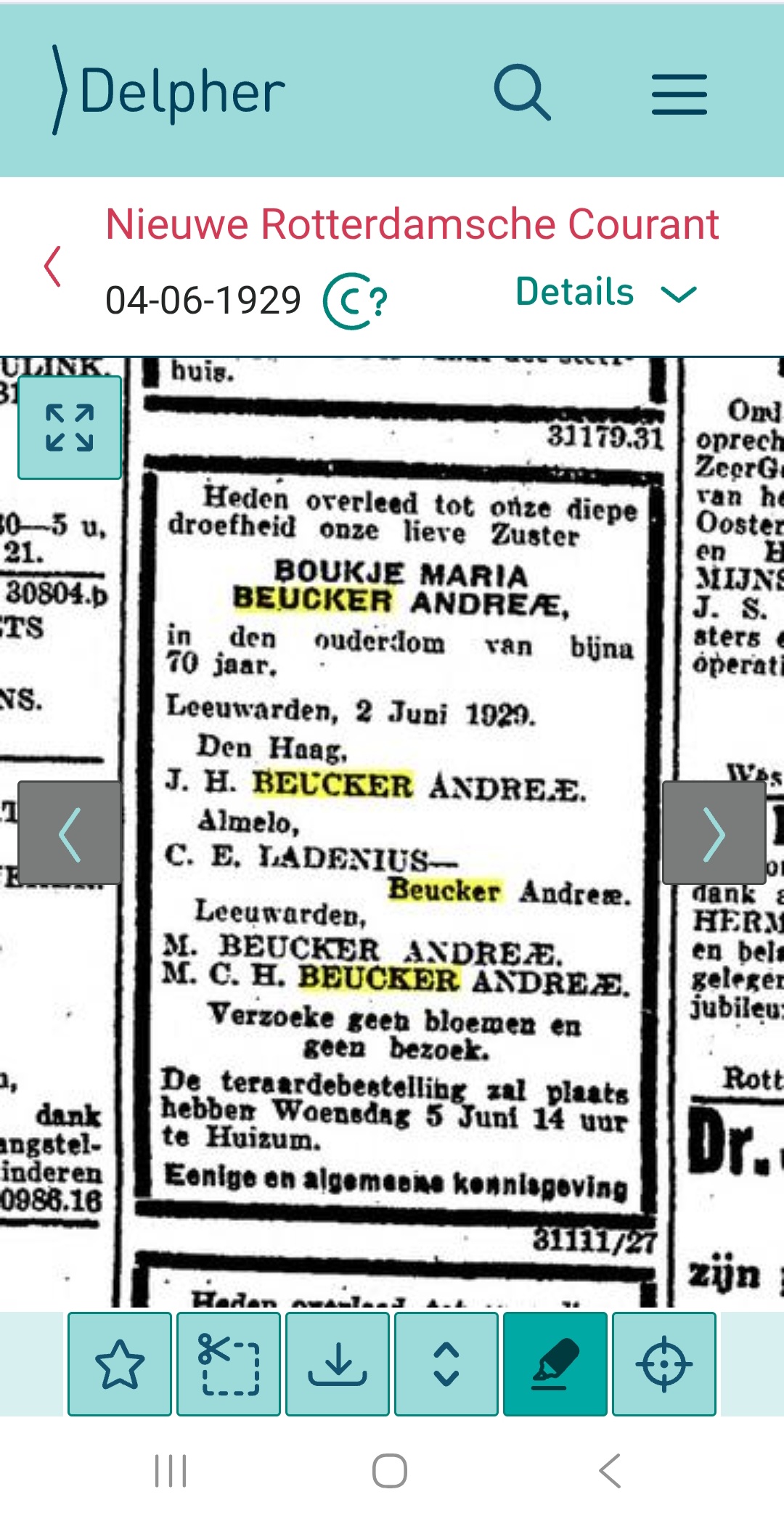 Geadresseerde: C.E. Ladenius-Beucker Andreae