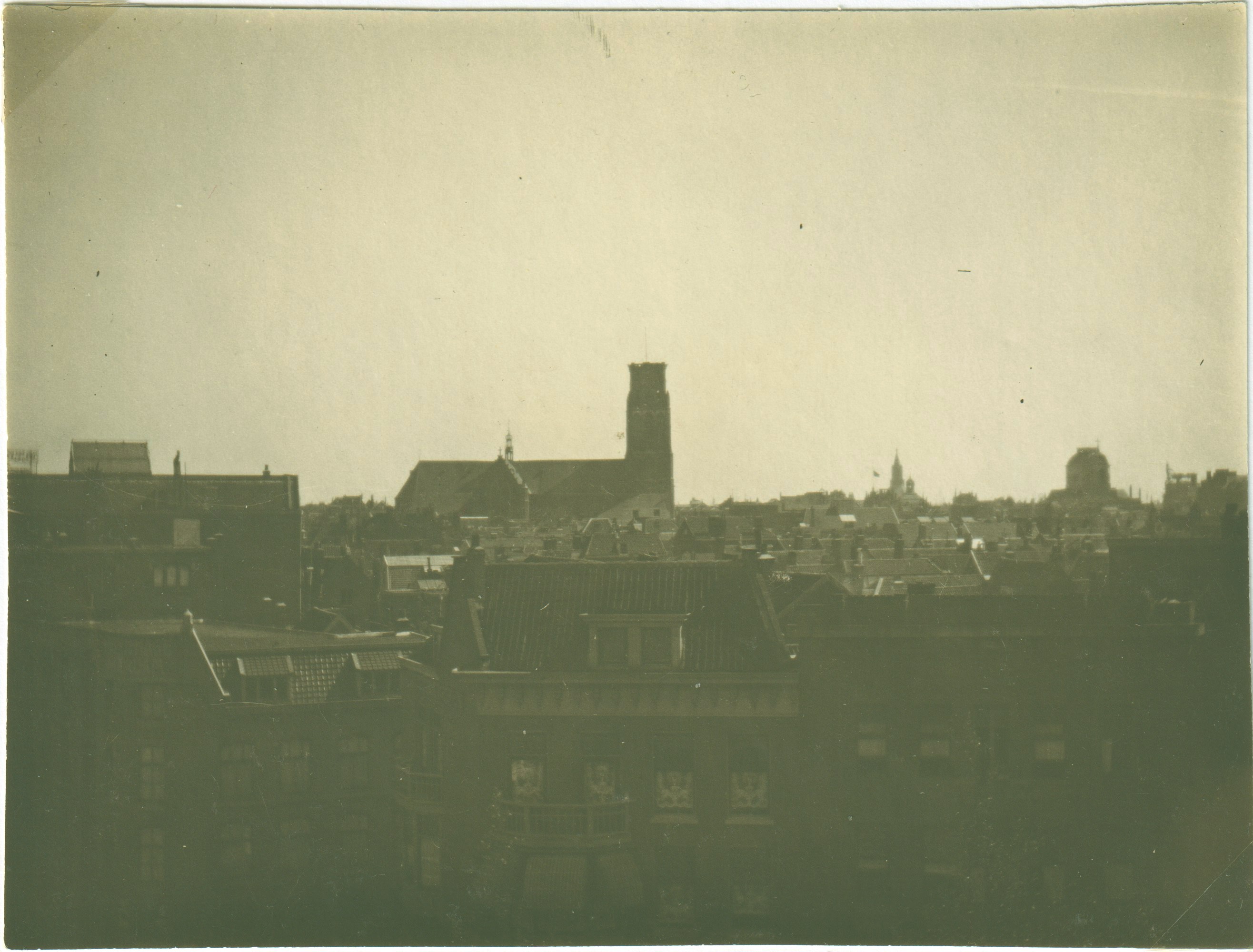 kijkend naar het zuiden, op de achtergrond 4 herkenningspunten, de St.Laurenskerk, Lutherse kerk, Zuiderkerk, Steigerse kerk