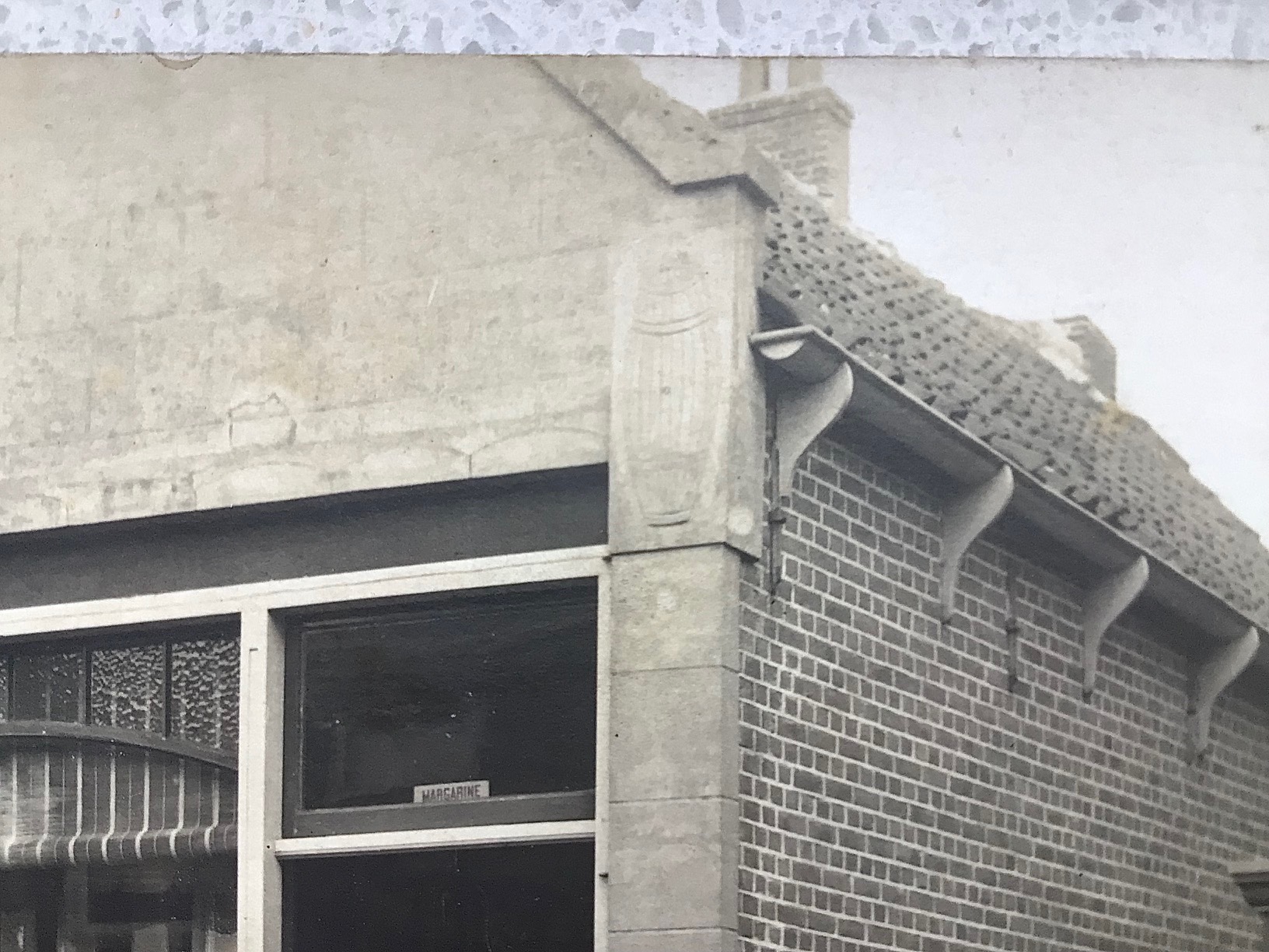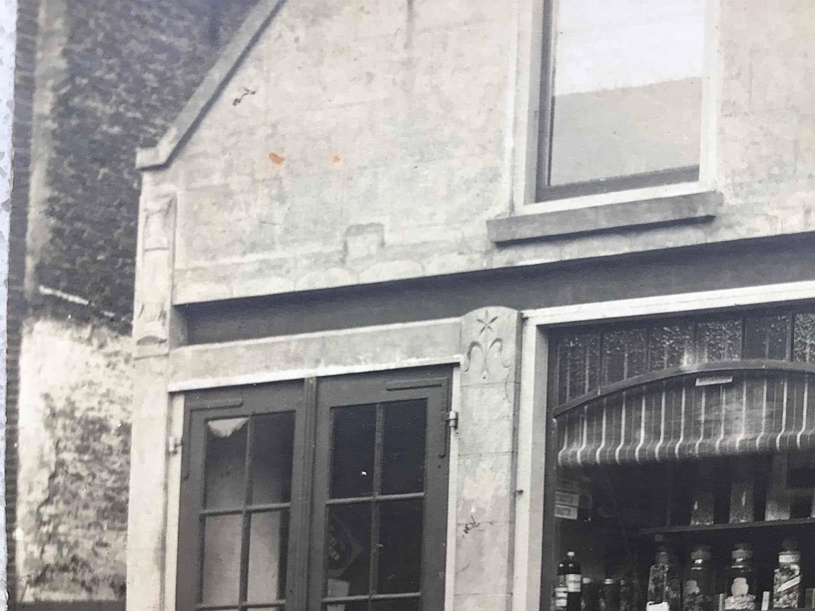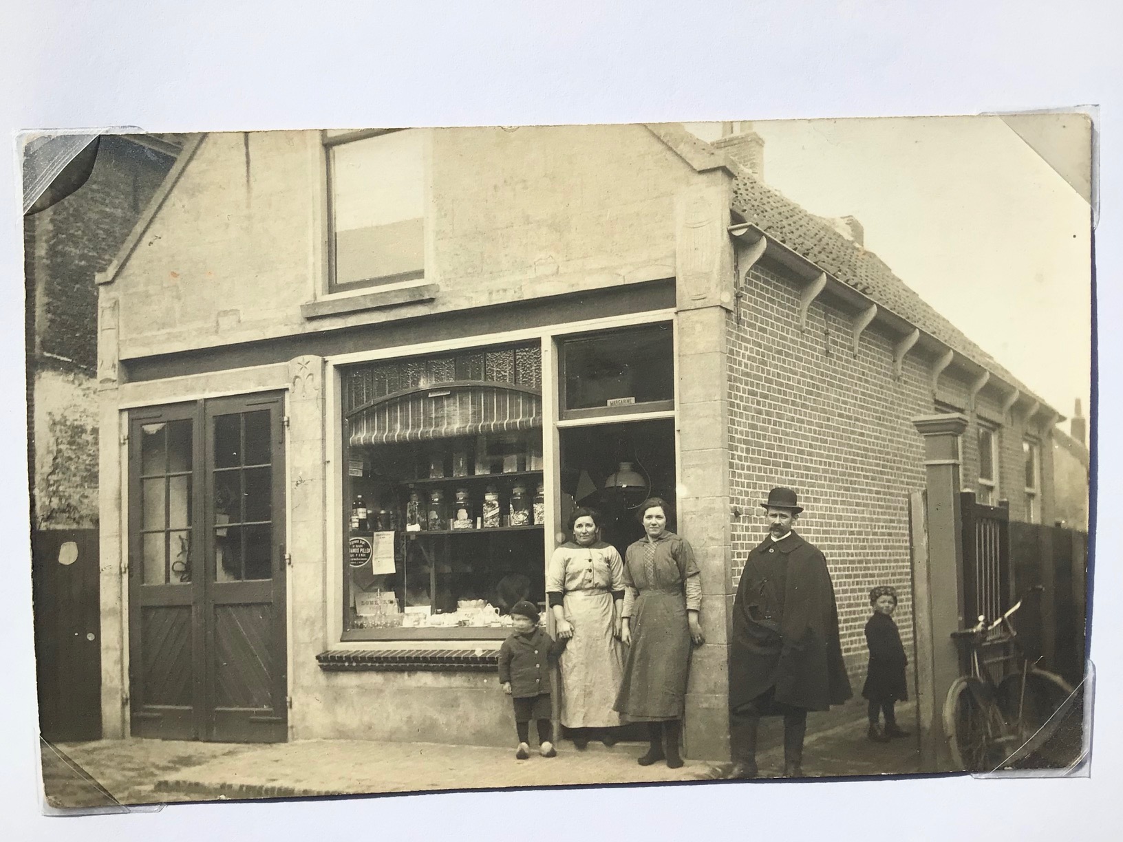 fotokaart, er staan geen aanwijzingen op in de vorm van een huisnummer of een naam op de winkelruit o.i.d.