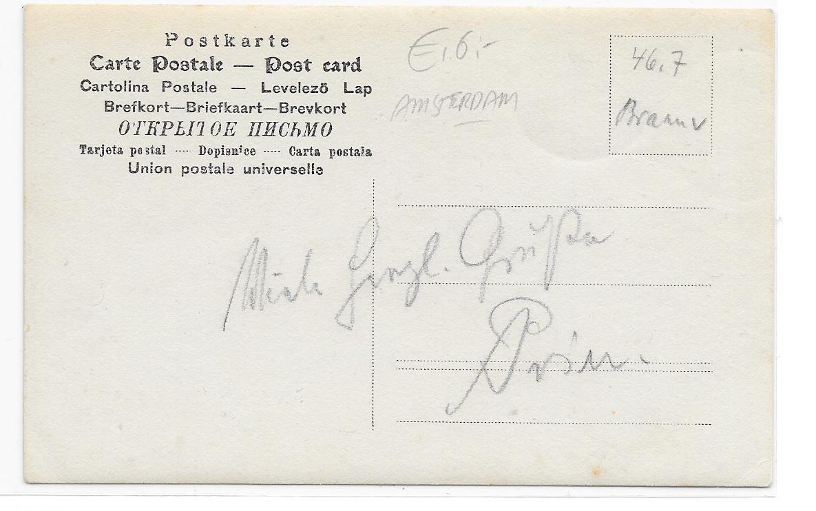 De potloodtekst aan de achterzijde luidt (voluit): Schicke herzliche Grüsse. De ondertekening lijkt mij niet relevant en is in elk geval niet te herleiden.