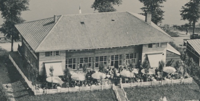 4347g luchtopname van houten horeca-etablissement tegen dijklichaam HAVC
