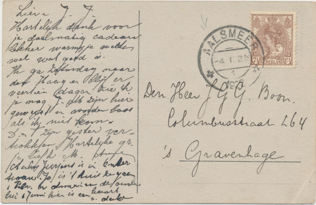 belijnde gelopen fotokaart, gestempeld Aalsmeer 1922