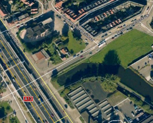 Het water uiterst rechts (vaag), lijkt me veel breder dan de Schie.