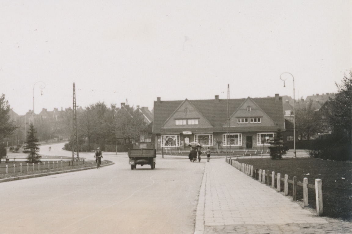 in het linker pand van het gebouw met de twee dakpunten is een sigarenmagazijn gevestigd