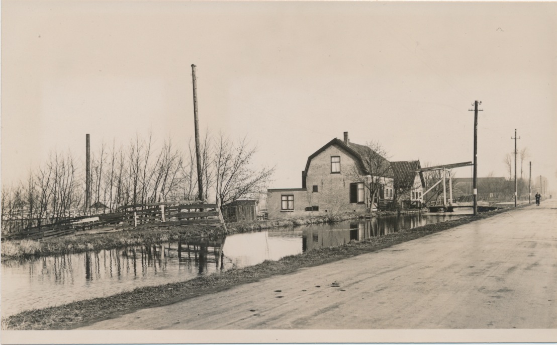 4543 woning met mansardedak naast kanaal met houten ophaalbrug