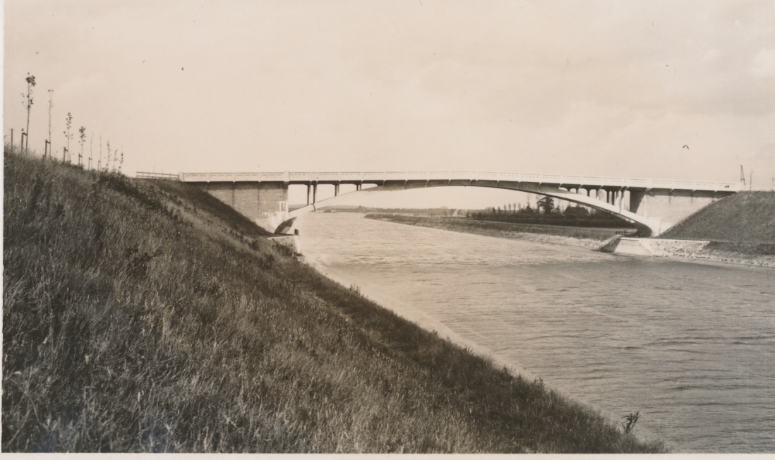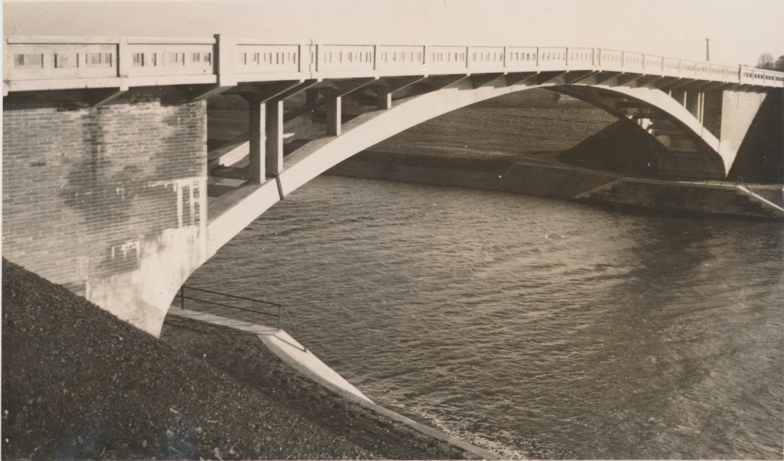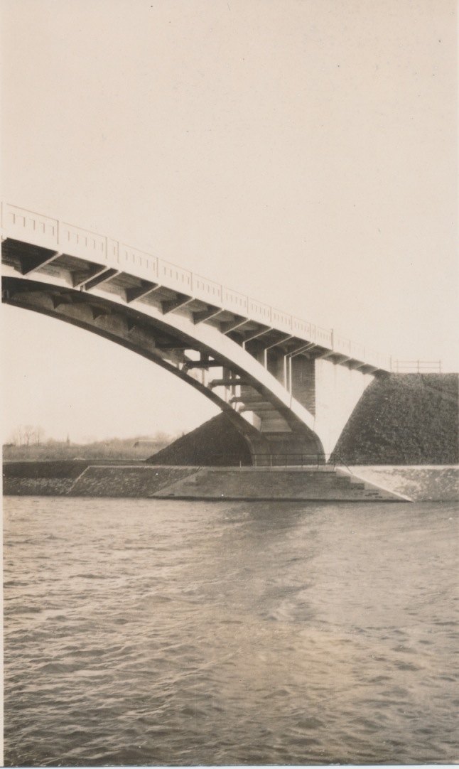 Martin, niks buitenland dus. Ik had ook al zo'n onbestemd gevoel met buitenland. Maar omdat er nogal wat buitenlandse bruggen in de partij zaten, begon ik toch ietwat te twijfelen. Ik heb ook nog twee opnames van de bouw van een brug, maar of dat deze brug is? Ik zal ze t.z.t. plaatsen. Ik zie dat deze brug heel wat heeft meegemaakt: opgeleverd, opgeblazen, opgeknapt en hersteld en tenslotte afgebroken en vervangen. Ik vermoed dat mijn opnames kort na de oplevering in 1926 zijn gemaakt. Wat me opviel bij jouw links was, dat de oorspronkelijke bouwer van de brug, de Hollandsche Beton Mij., ook was ingeschakeld bij het herstellen van de brug in 1945. Zij waren natuurlijk ook bij de bouw betrokken.