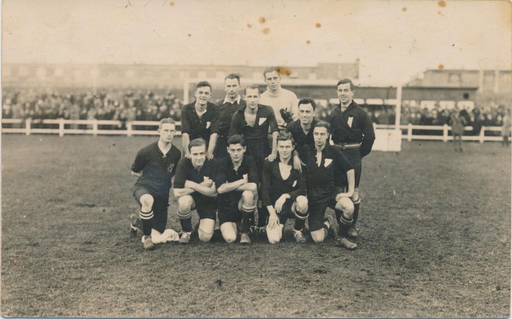 Theo, je zit 100% goed. In het filmpje is na 31 seconden een elftal te zien. Ik heb het beeld stil gezet en ik ontdek in dat elftal dezelfde spelers als op mijn fotokaart. Wat een schitterende vondst en wat een ontzettend fraai bewijs. Heel hartelijk bedankt. Hans bedank ik graag voor zijn inspanningen.