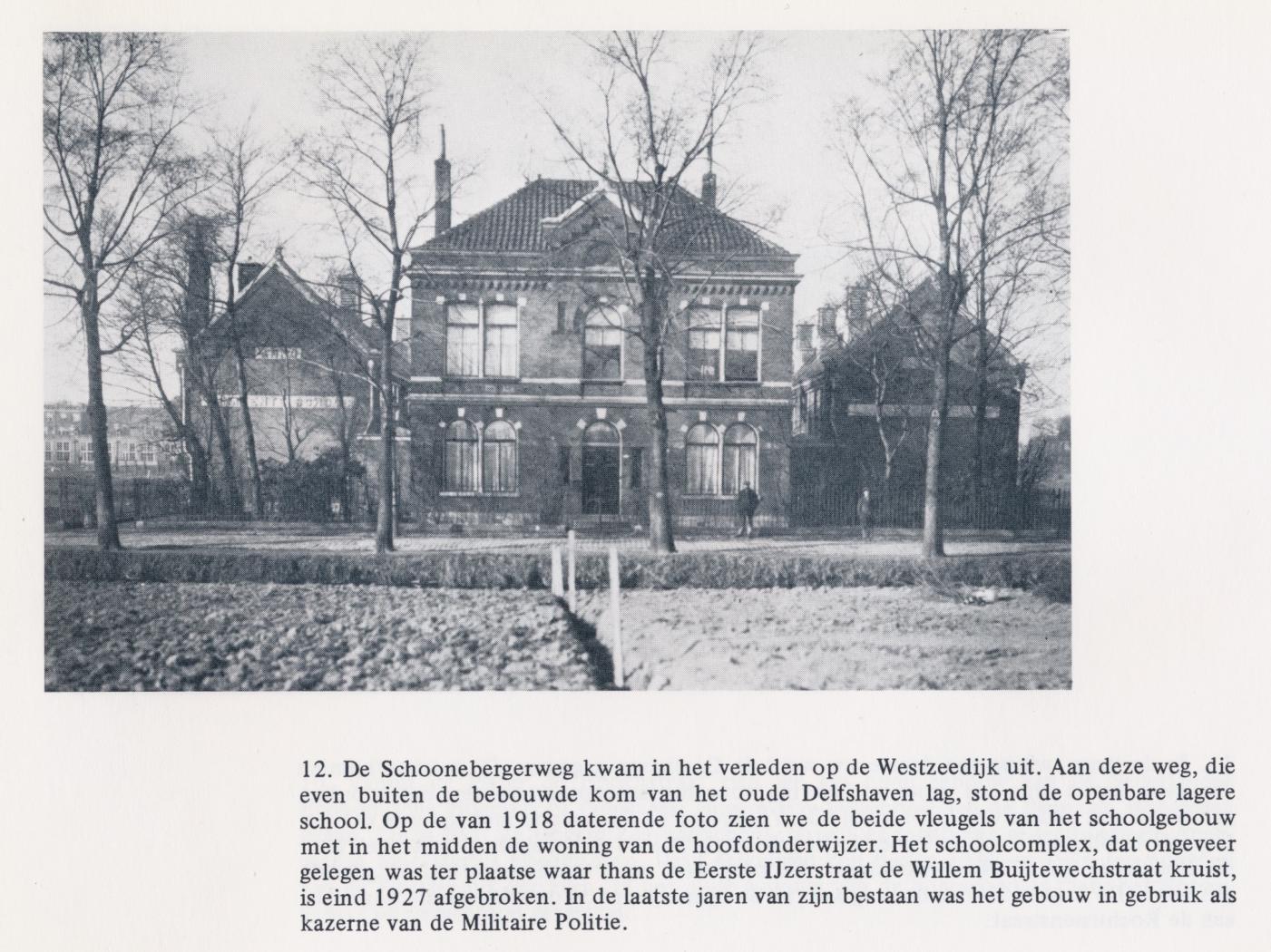 nu in jullie reacties de Schoonebergerweg wordt genoemd, herinnerde ik me dat ik daar ooit iets over heb gelezen. Ik heb de betreffende bladzijde uit: Delfshaven in oude ansichten deel 2 gekopieerd. Er is sprake van dat in de laatste jaren van het bestaan (afgebroken eind 1927) het gebouw in gebruik was als kazerne van de Militaire Politie. Zou die eenheid identiek zijn aan Politie Troepen Groep Rotterdam?
