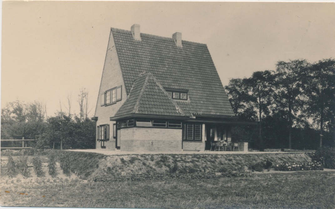 jammer dat we alleen de zij- en achterkant van het huis zien, dat op een opgeworpen verhoging staat