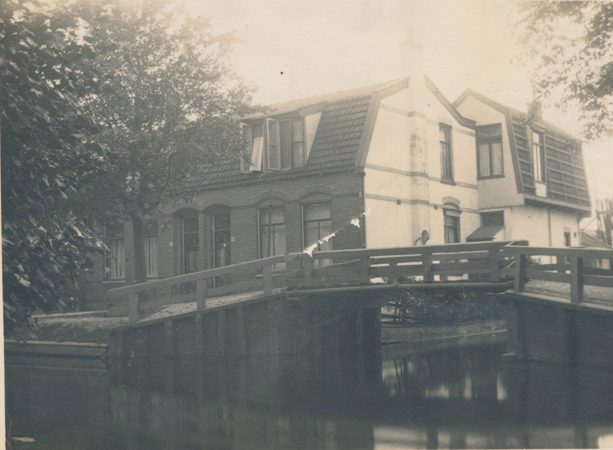5030g woningen met mansardedak, wit gestucte zijkant bij bruggetje JBI - ret.