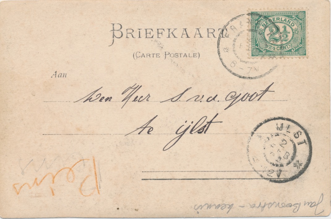 belijnde gelopen fotokaart, gestempeld Franeker 1904