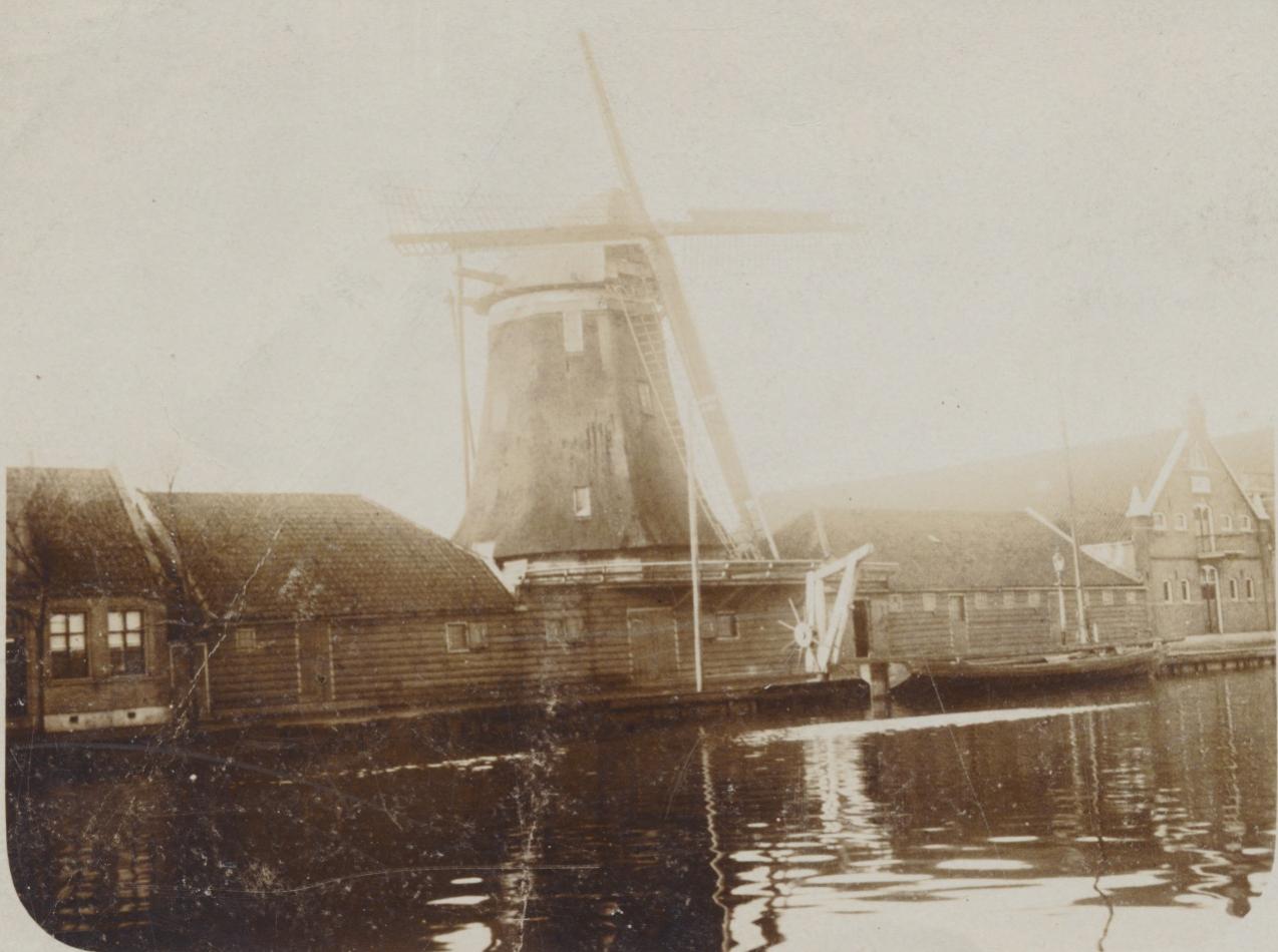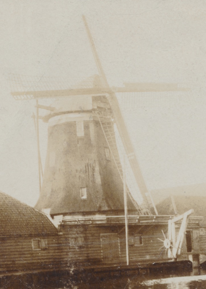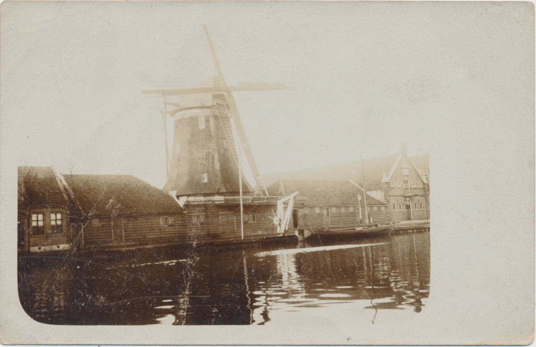 5290 molen tussen houten gebouwen