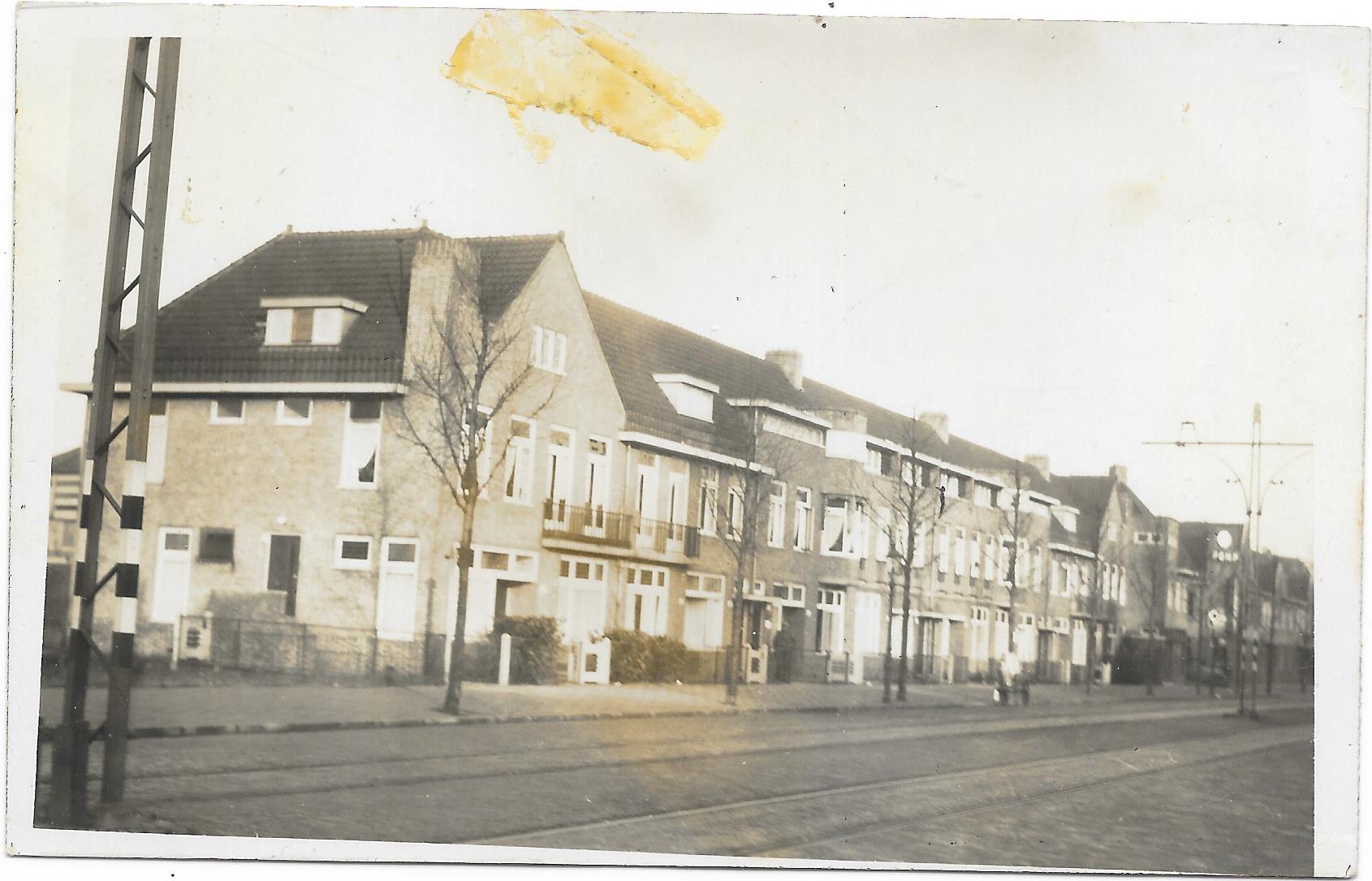 huizenrij met trambaan, stempel Haarlem 1934