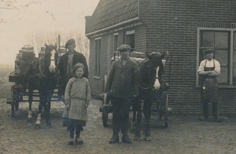 volgens mij een melkveebedrijf of melkbedrijf, gezien de melkbussen op de wagens