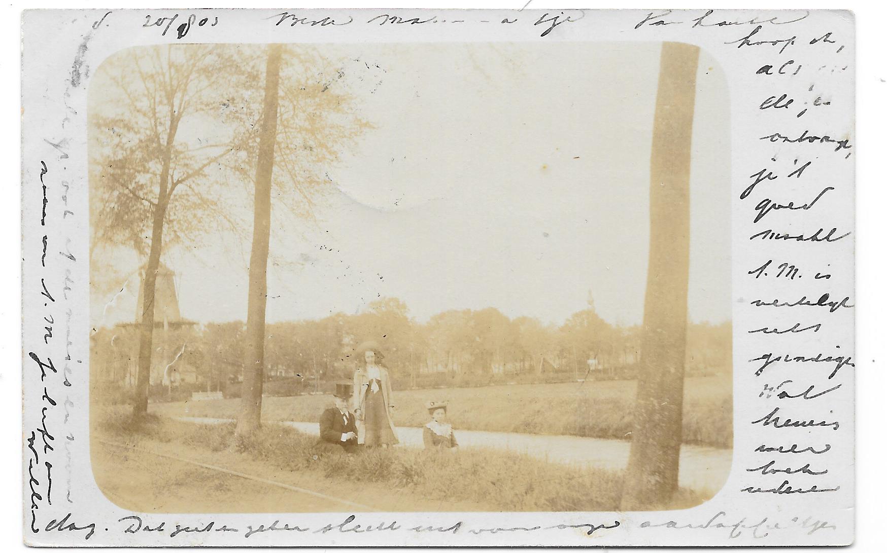 We zien dan Korenmolen ,,de Bloem,, en rechts het torentje van gebouw begraafplaats ,,Vredenhof ,, .We staan dan met onze rug naar Halfweg ..Op beeldbank Amsterdam zijn de molen en torentje op een foto uit 1935 te zien .. wellicht dat een molenkenner nog het laatste stukje bevestiging kan geven ?