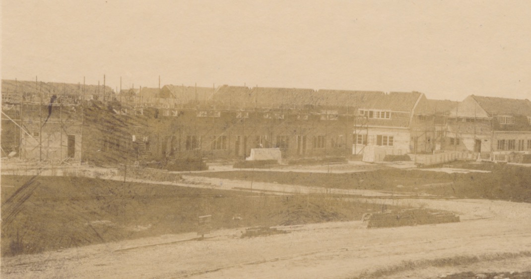 iedere woning heeft 2 ramen, ieder raam in drieën gedeeld
