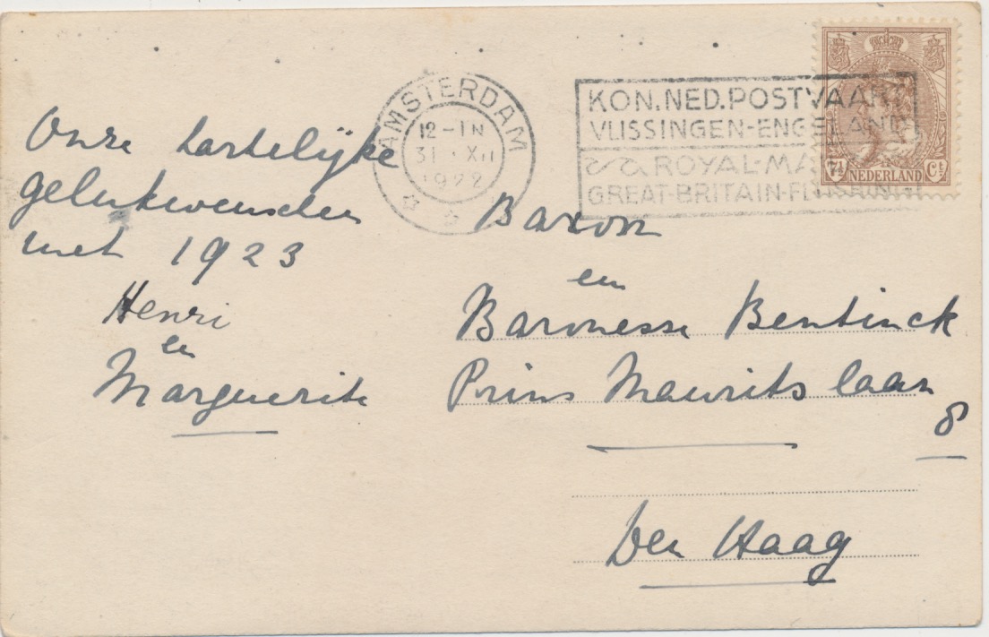 belijnde gelopen fotokaart, gestempeld Amsterdam, 31-XII-1922, verzonden naar Den Haag