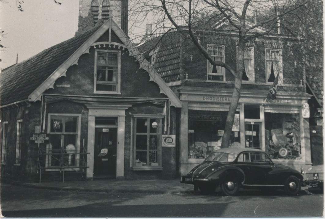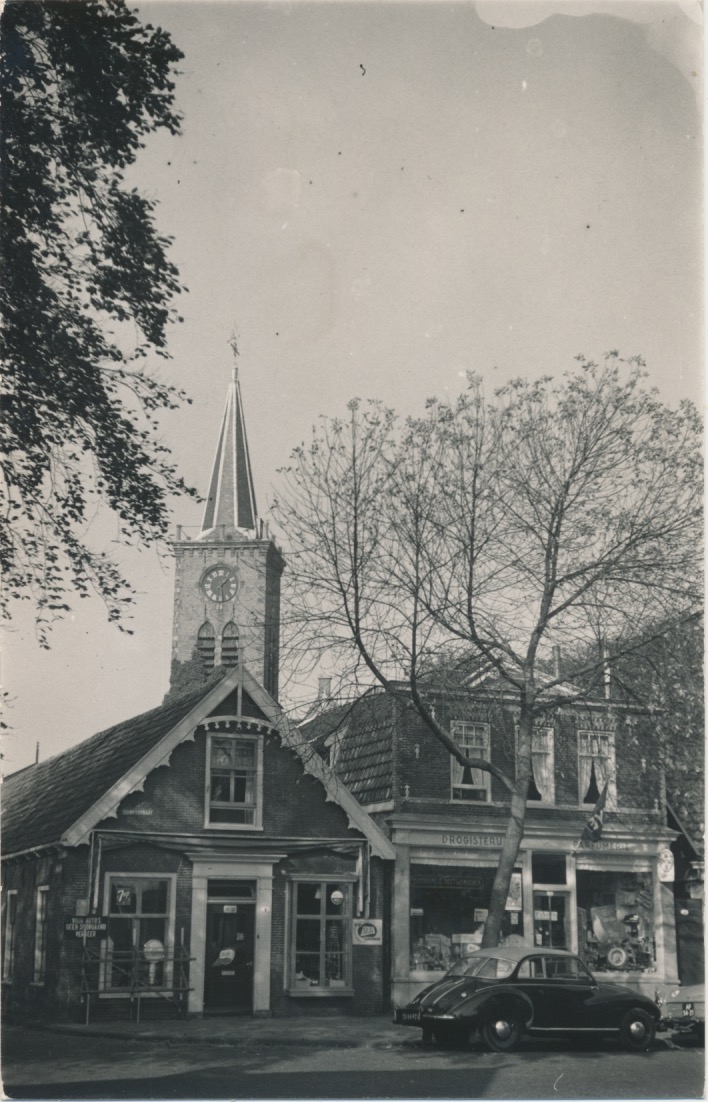 5973 tweetal winkels aan de Dorpsstraat vóór kerktoren
