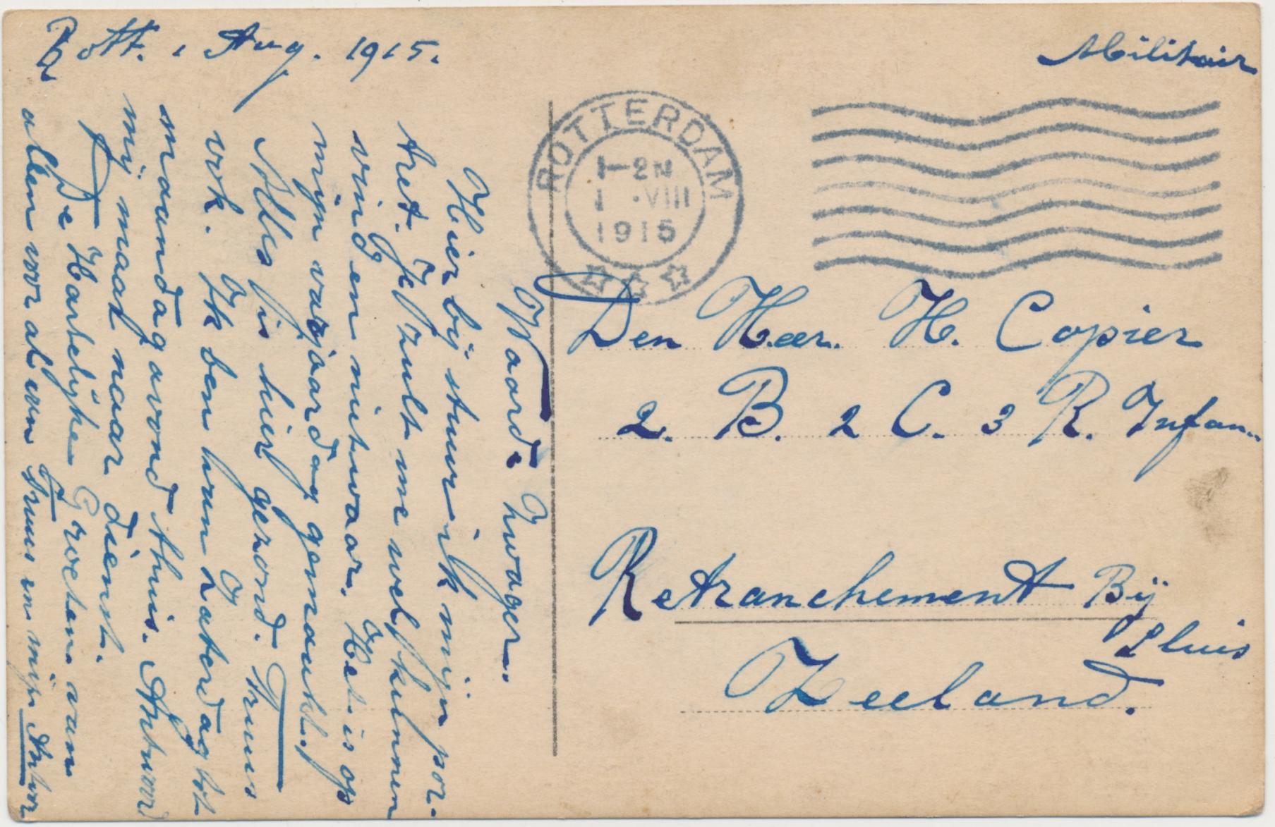 belijnde, gelopen fotokaart, gestempeld Rotterdam 1915