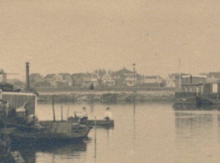 welke huizen zien wij dan op de achtergrond achter de oeverkant en bestaan die nog?