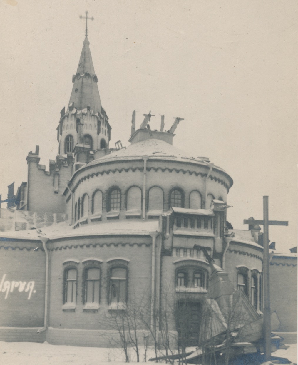 Nu ik goed dan nog eens goed kijk, zie ik inderdaad ook de beschadiging uit 1919; het afgebroken torentje ligt op de grond. Erwin, jij bedankt voor de twee draaien om m'n oren. Een mens is nooit te oud om te leren.