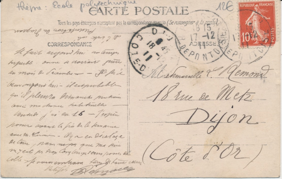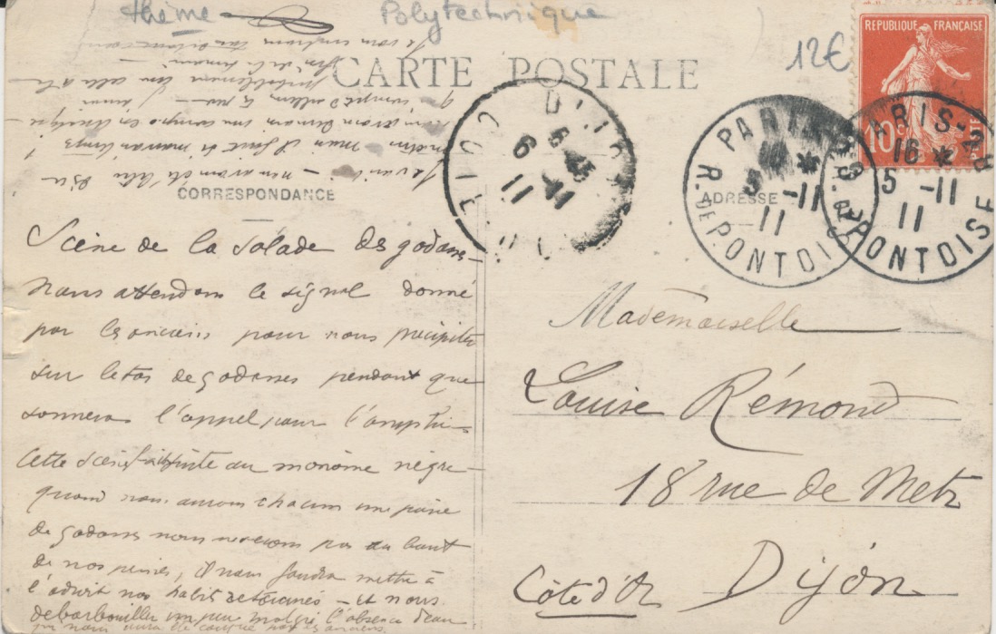 6644 2x kazerne, École polytechnique 1911 gestempeld Paris Rue de Pontois