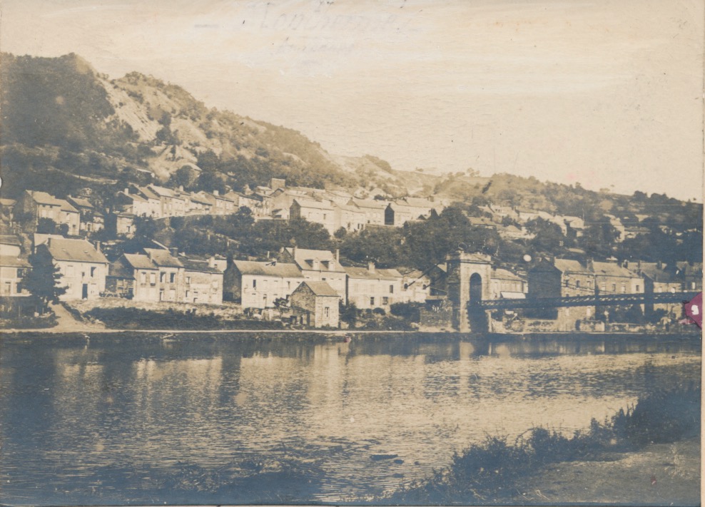 Frankrijk, Monthermé, le Pont suspendu / hangende brug over de Maas