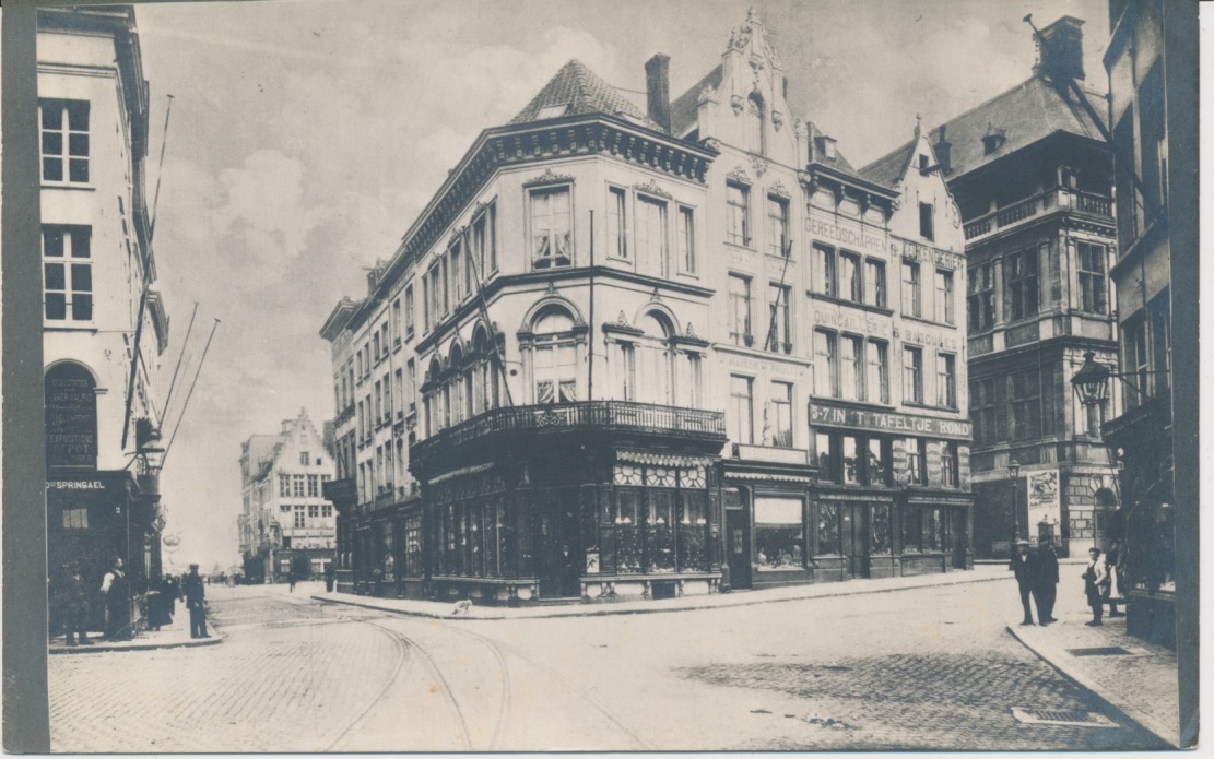 links bij nr. 2 o.a. Springael, rechts in de iets oplopende straat 5-7 'in 't tafeltje rond'