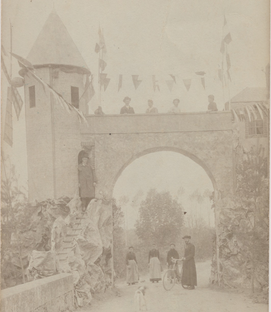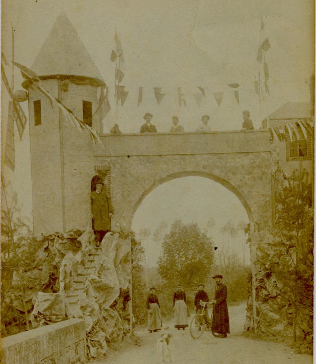 6691 feestpoort met vlaggen en molenkruis, nep?