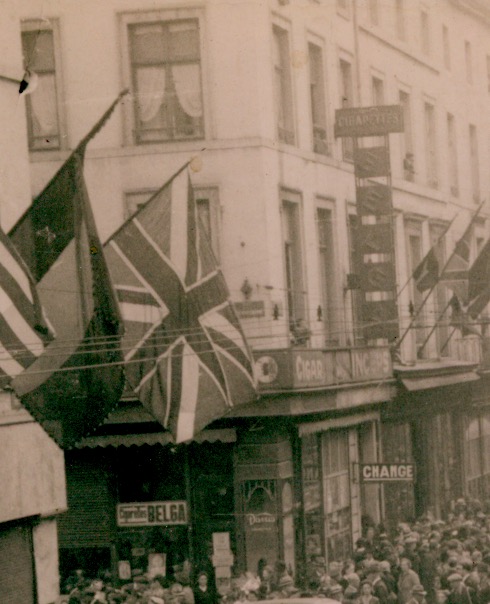 voorbij de zijstraat (met straatnaambordje) links is een hoekpand dat flink uitpakt met reclame voor Cigarettes Belga