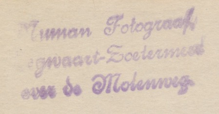 achterop een stempeltje: Numan Fotograaf, Zegwaart-Soetermeer, over de Molenweg