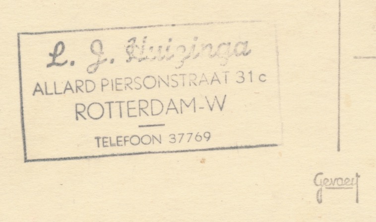 belijnde, ongelopen fotokaart van fotograaf L.J. Huizinga uit de Allard Piersonstraat 31 c