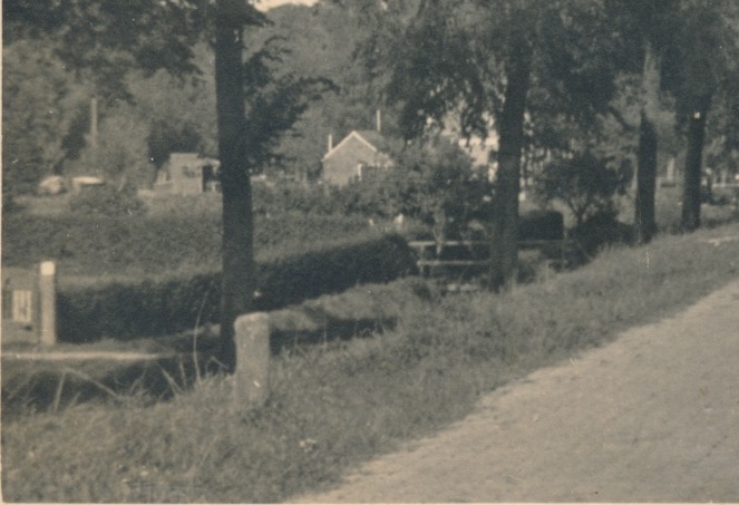links een huis achter een slootje, klinkerweg