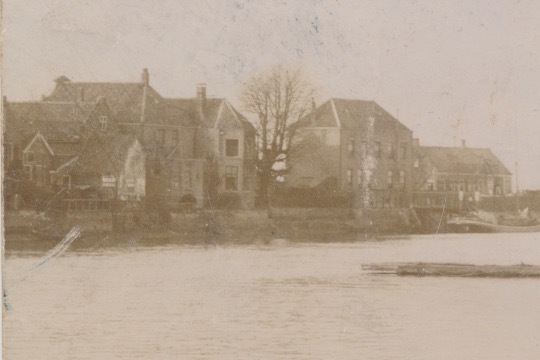 Dit is Gouderak, ik denk iets voorbij de veerstoep richting Ouderkerk. Op de achtergrond links zie Moordrecht, de laatste paar huizen richting Gouda. In het wat donkere uitstekende gedeelte ging ik naar de tandarts.