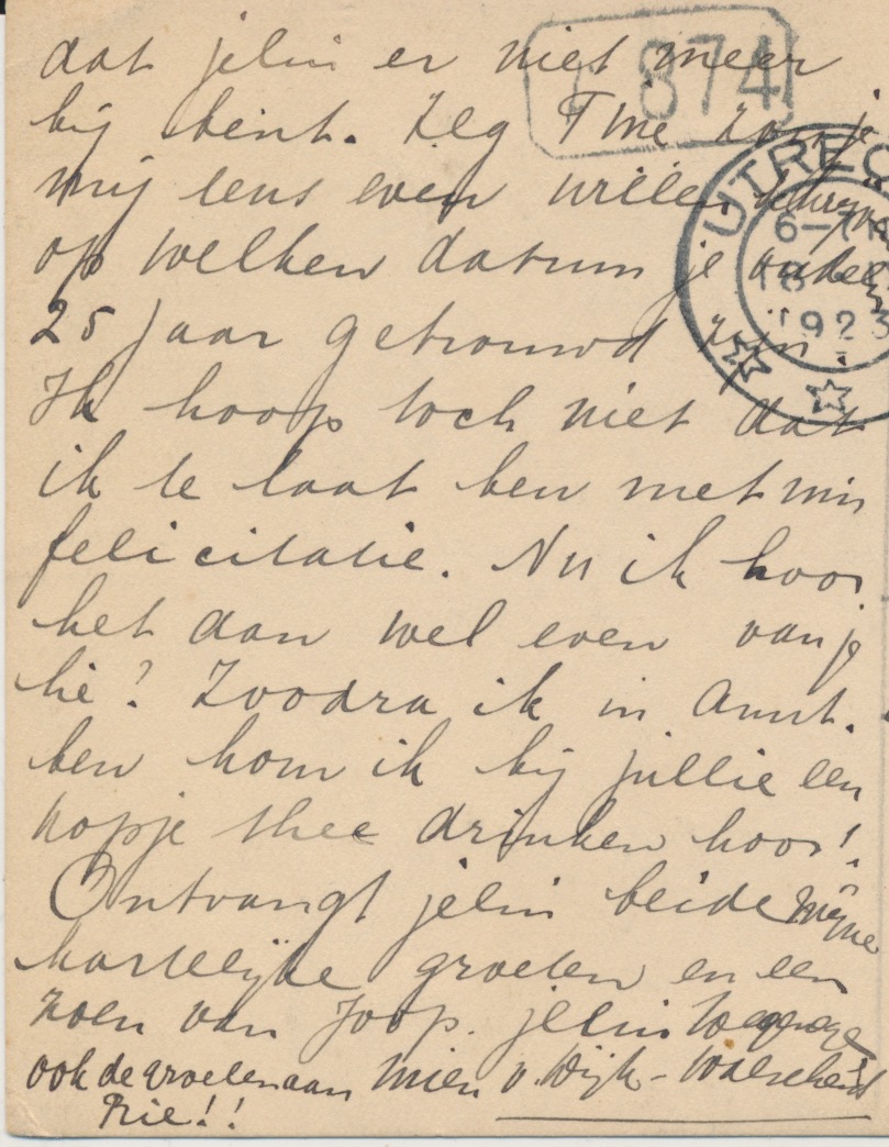 verzonden naar Amsterdam aan Tine en Louis Keijser