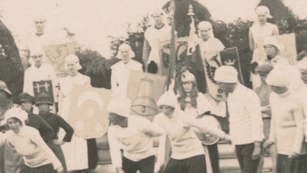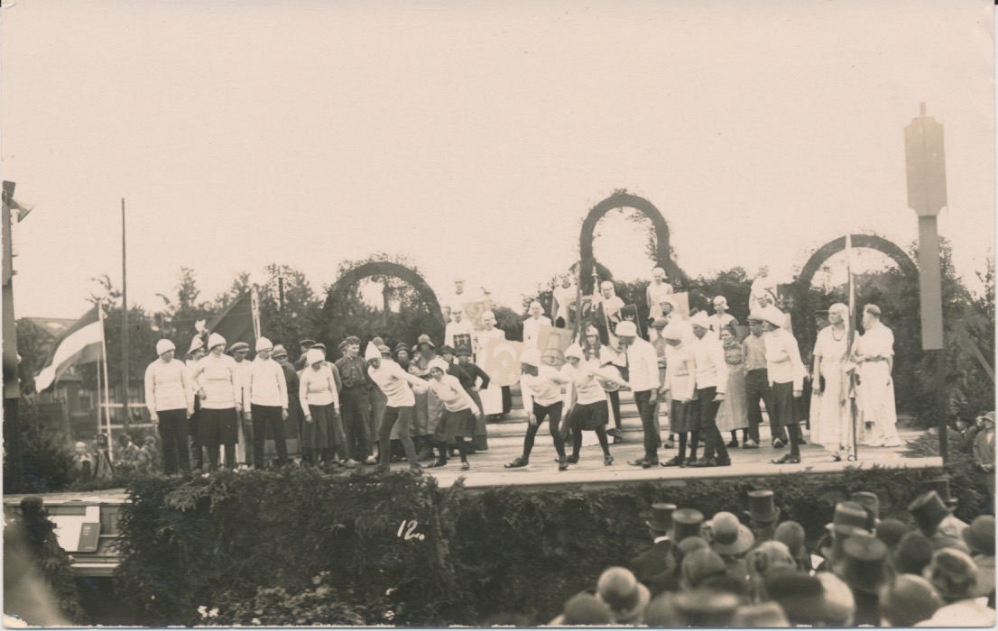 Links van het wapen van Dokkum is het wapen van Harlingen te zien, en ik heb niet verder gezocht. Het zal wel een of ander openluchtspel over de Elfstedentocht zijn; ik kwam op Delpher zo snel geen interessante link tegen.