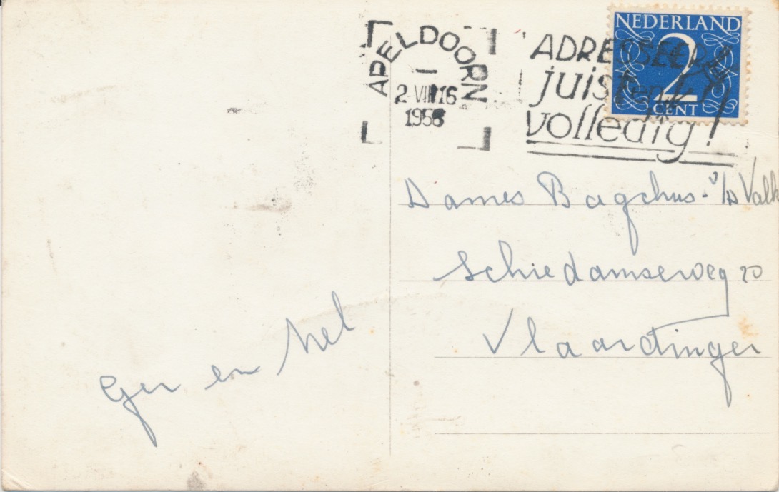 belijnde, gelopen fotokaart, stempel Apeldoorn 195?