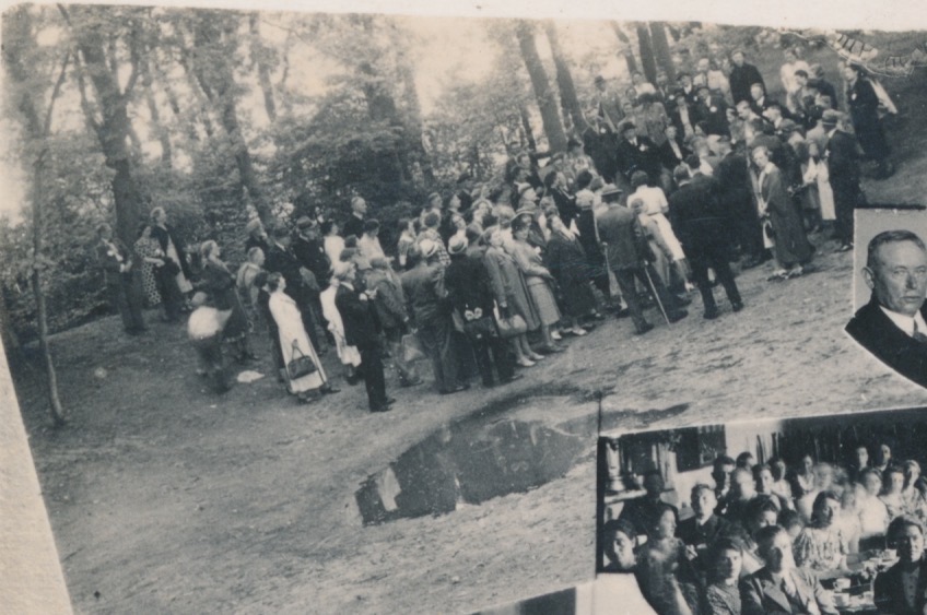 een aantal mensen hebben een vierkant kaartje op hun kleding