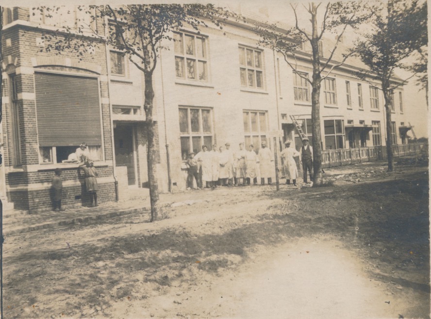 of zijn het gewoon mannen in witte jassen die naar buiten zijn gekomen uit de links van hen openstaande deur?
