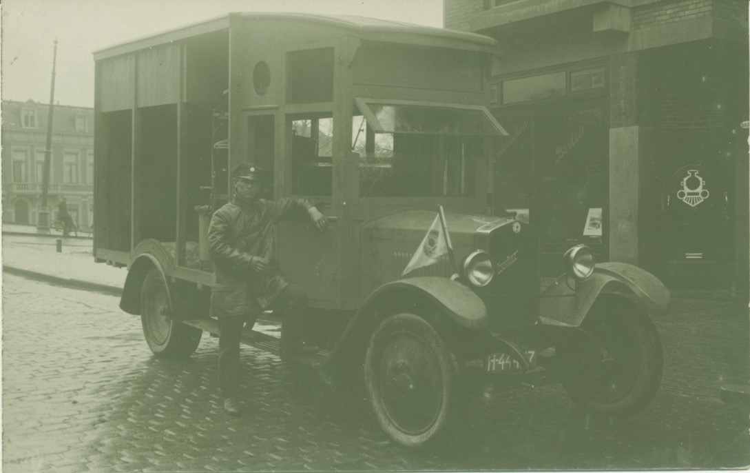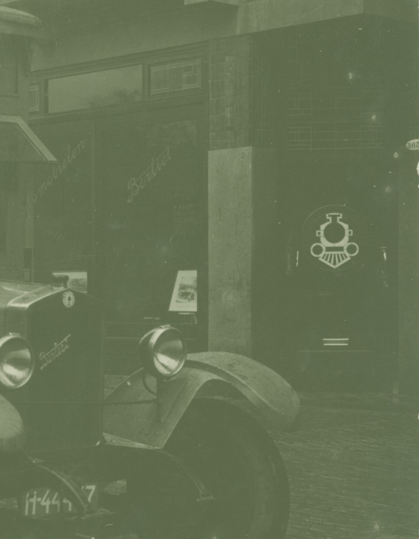 kenteken auto H-444?7 - op de auto een vlaggetje met vignet dat ik ook zie op de radiateur, automerk Berlier