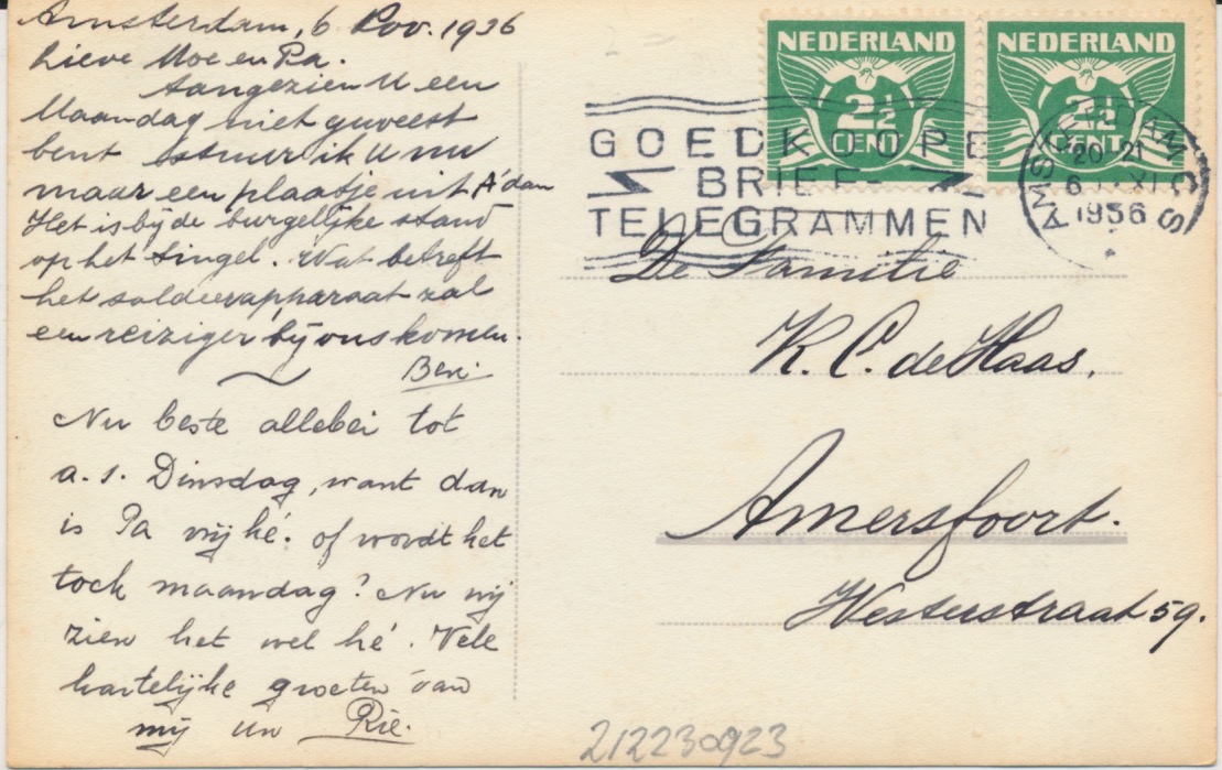 belijnde gelopen fotokaart, gestempeld Amsterdam 1936