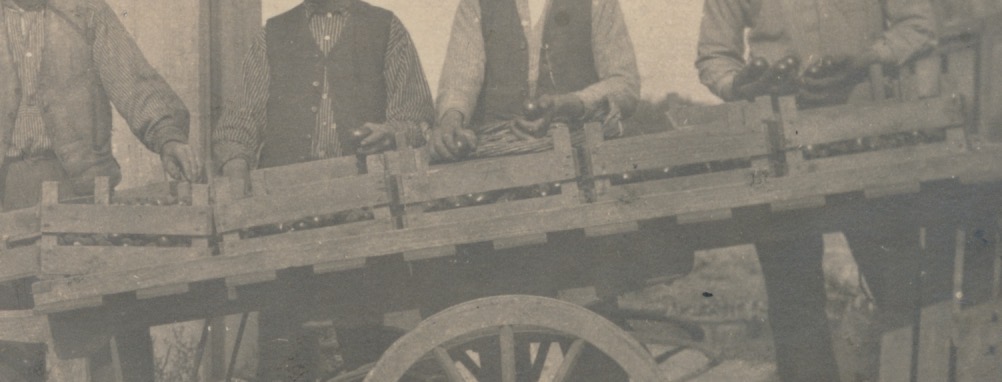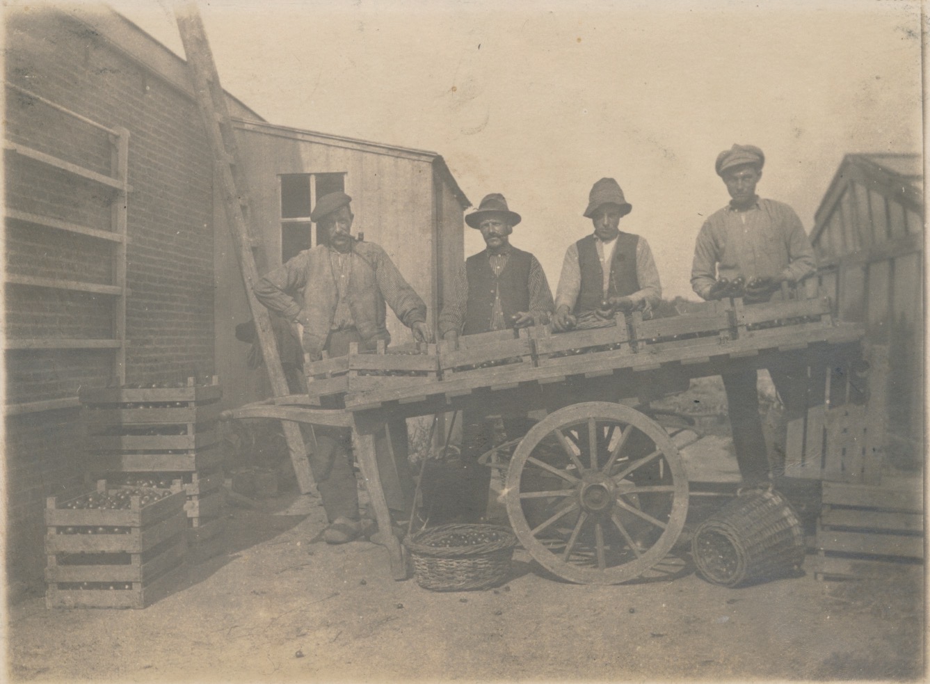 8047g 4 mannen bij handkar met vruchten/fruit - JBI