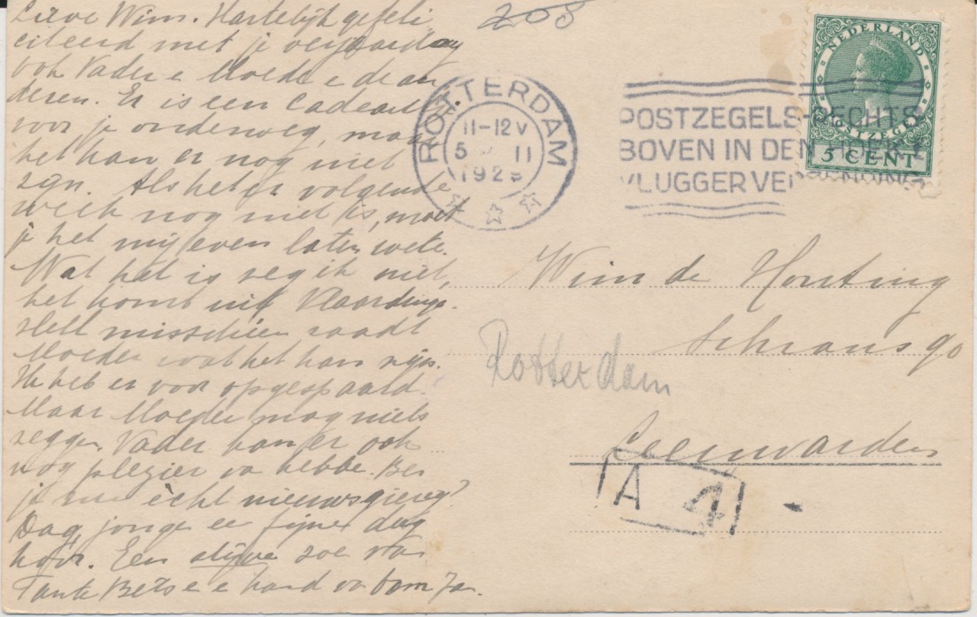 belijnde gelopen fotokaart, gestempeld Rotterdam 1929