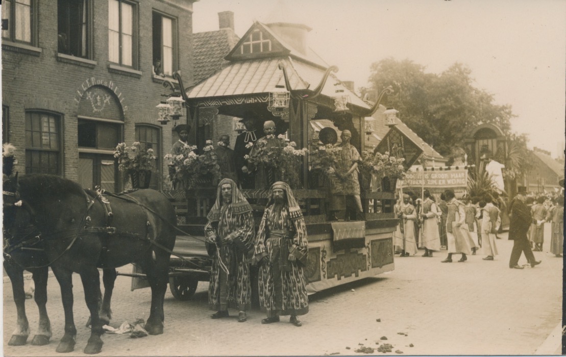 praalwagen met opvallend uitgedoste mannen