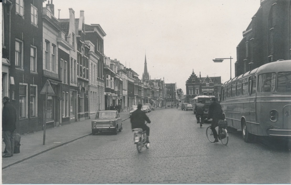 8462 stadsgezicht, kerktoren, autobus, trapgeveltje