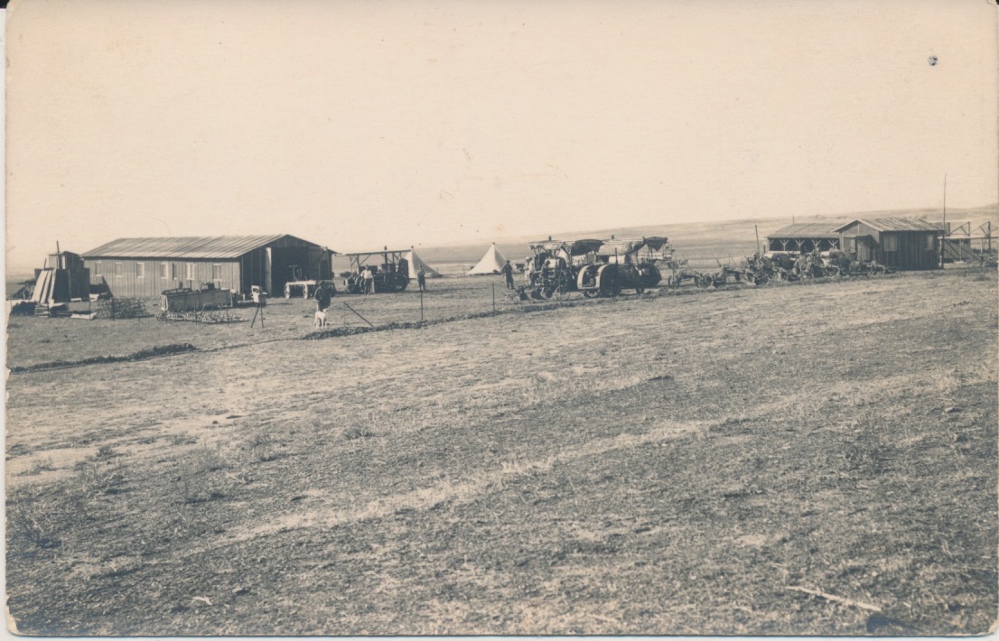 landbouwwerktuigen [tractoren?], kleine agrarische gemeenschap