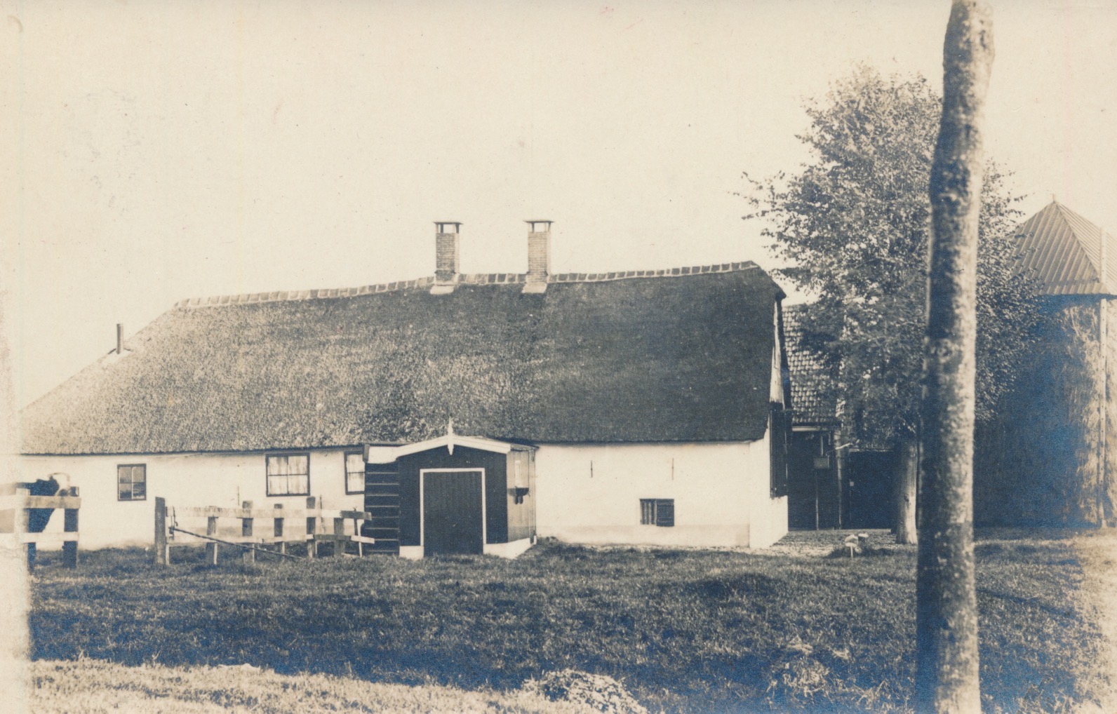 8747 witte, rietgedekte boerderij, opvallende ingang