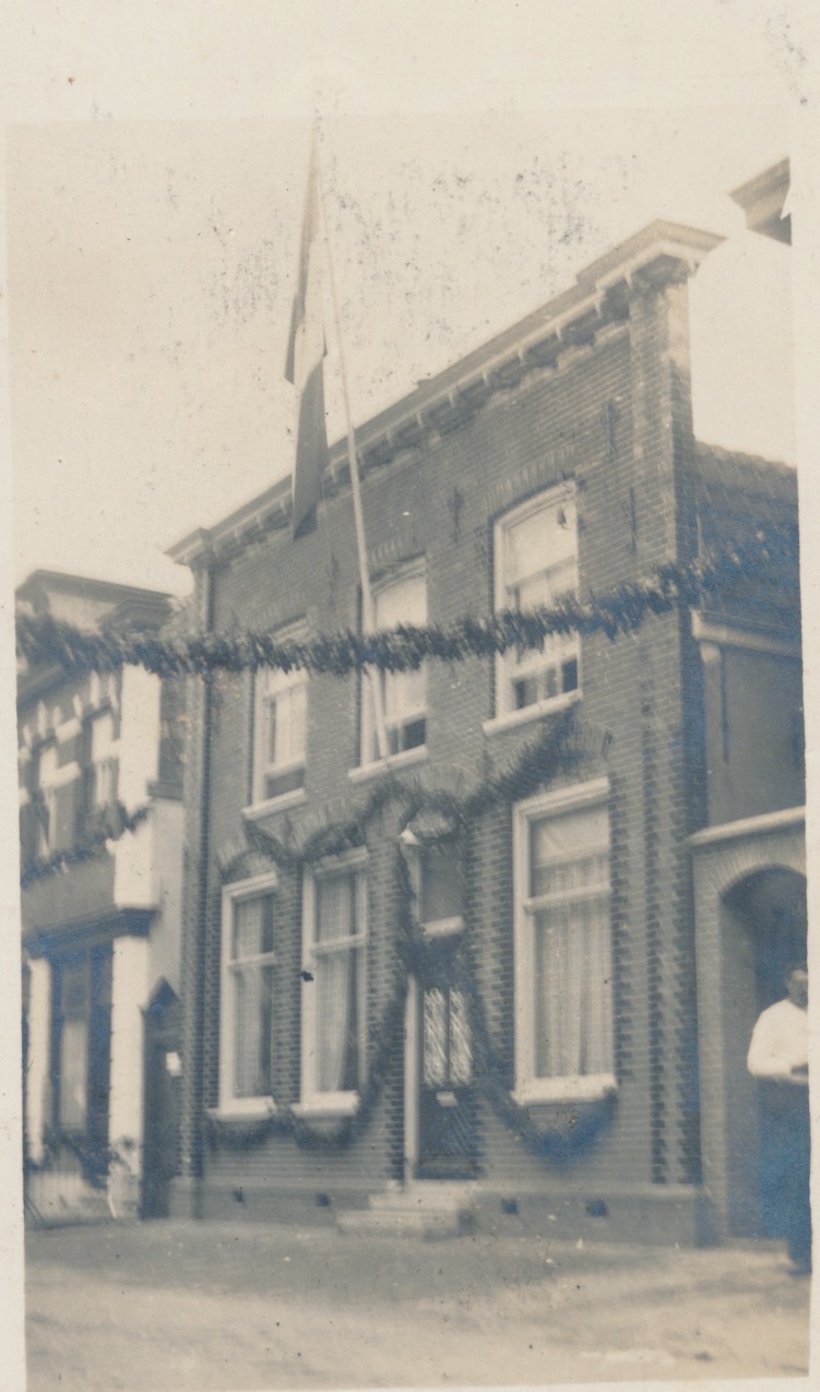 8693g straatgezicht, pand vlaggenstok vlag - JBI