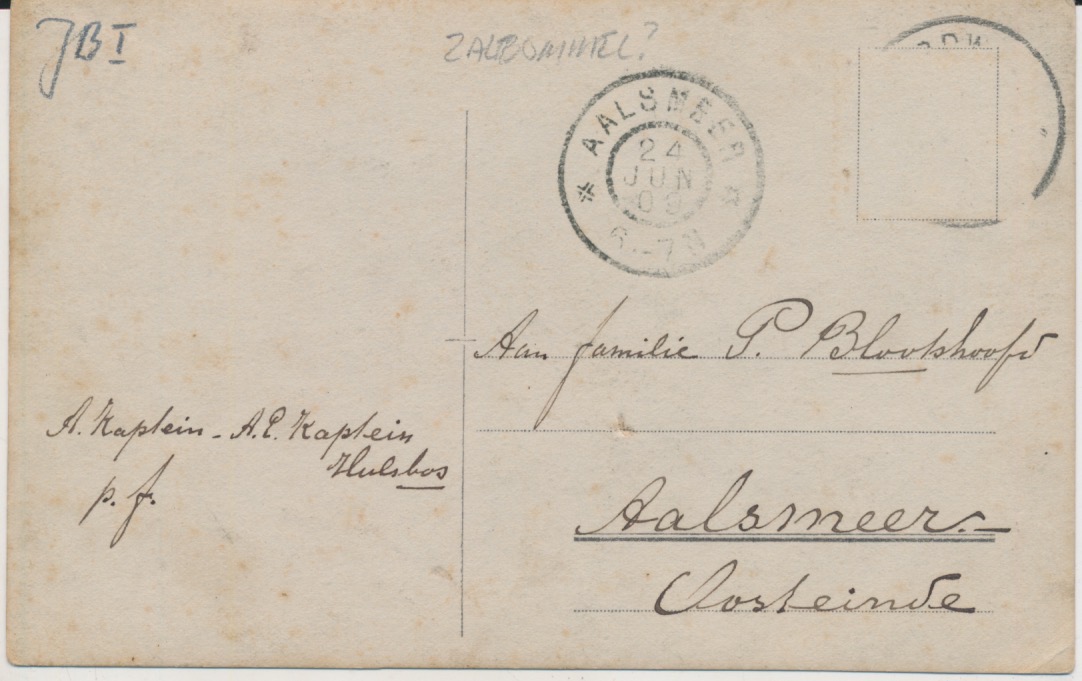 afzender A. Kaptein - A.E. Kaptein-Hulsbos (E = P of Q ?)