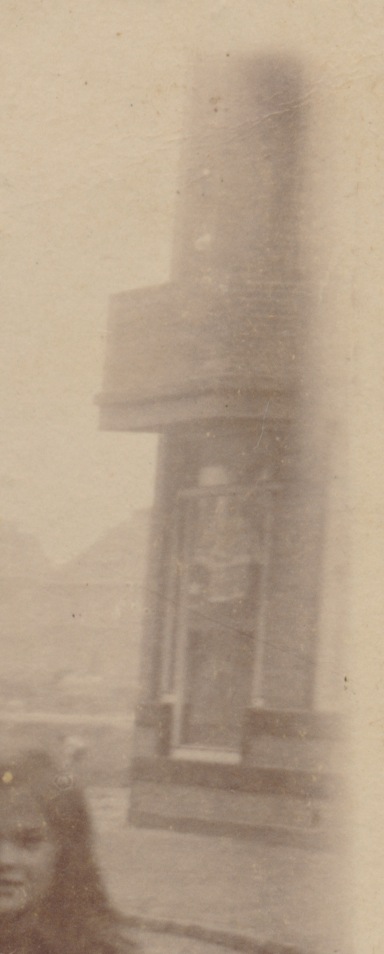 Op de achtergrond zien we dan de schoorsteen en de bakkerij van van der Meer en Schoep op de hoek Rhijnvis Feithstraat / Van Lennepstraat.